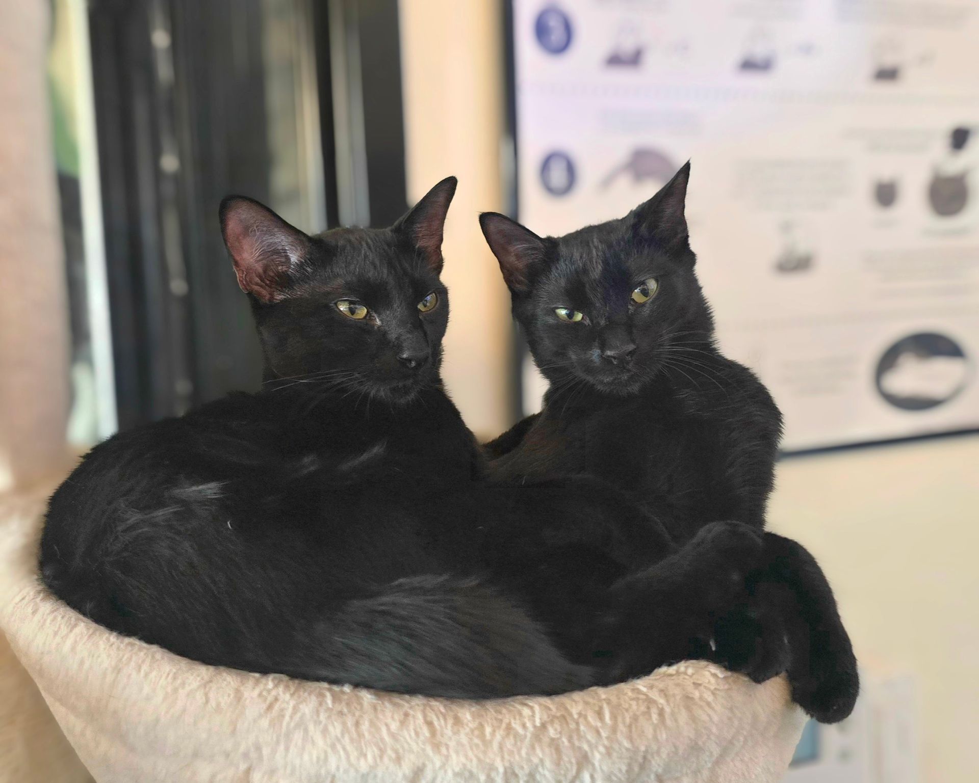 We're Snap, Crackle, and Pop. And the cereal with that slogan is known for making days good ones, so it's fitting for us. We didn't take much time to start interacting with the staff here. Snap and Crackle, pictured here, decided to pose for the camera right after we arrived. Pop took a little longer to say hello. But give us some time and we'll show you our energetic nature and fun personalities. Make sure there's another active and playful cat for us if you want to take us home.